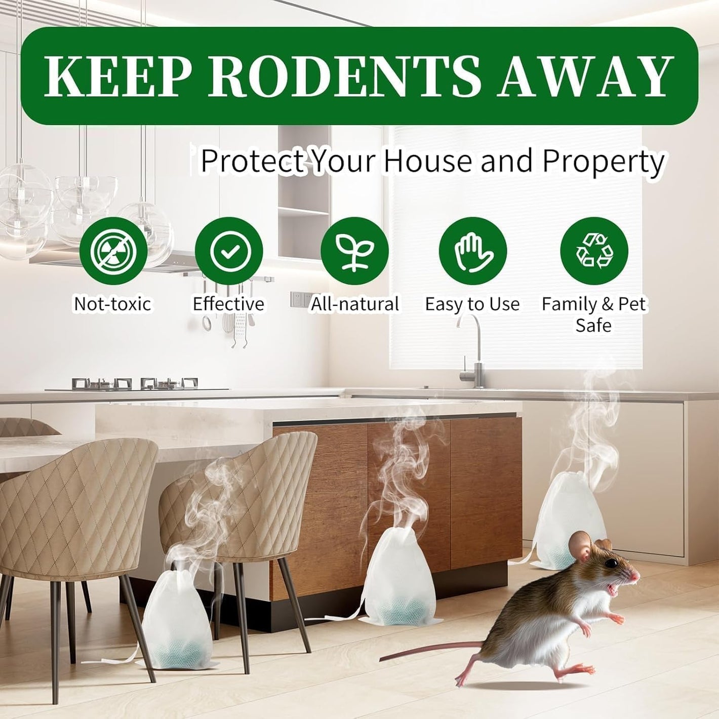Our all-natural herbal tablets release a powerful aroma that rodents hateākeeping them out of your home without killing or harming them.